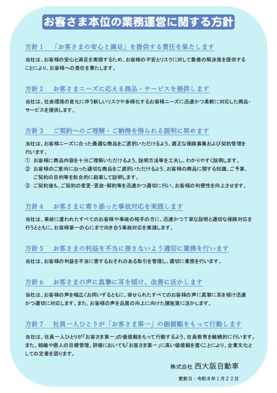 ヒトとクルマの未来をまじめに考えて、50年。西大阪自動車はより良いサービスの為、ホームページを公開致しました。